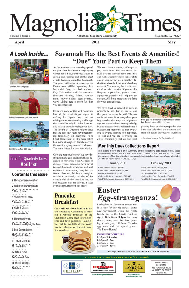 Newsletter - Savannah's Magnolia Times (front page sample)